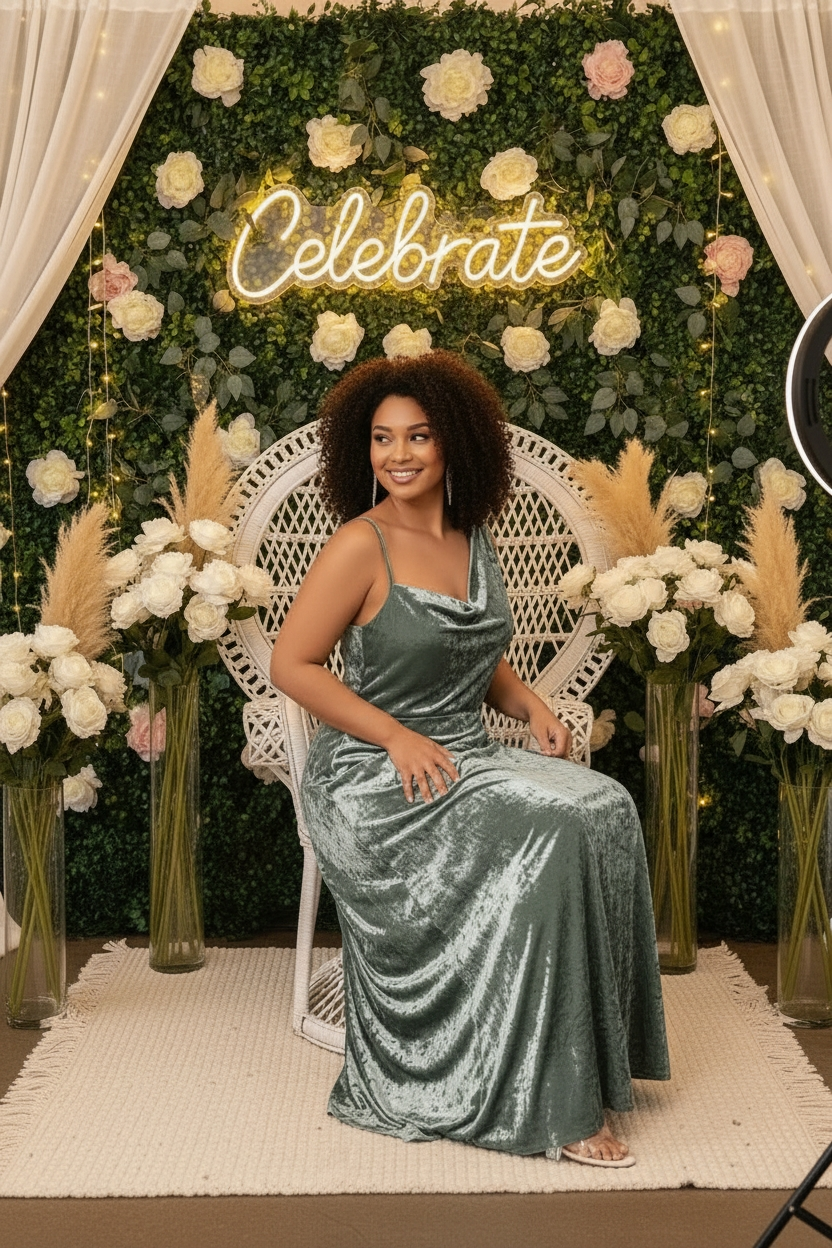 Modelo Greta – Vestido Verde Menta en Terciopelo