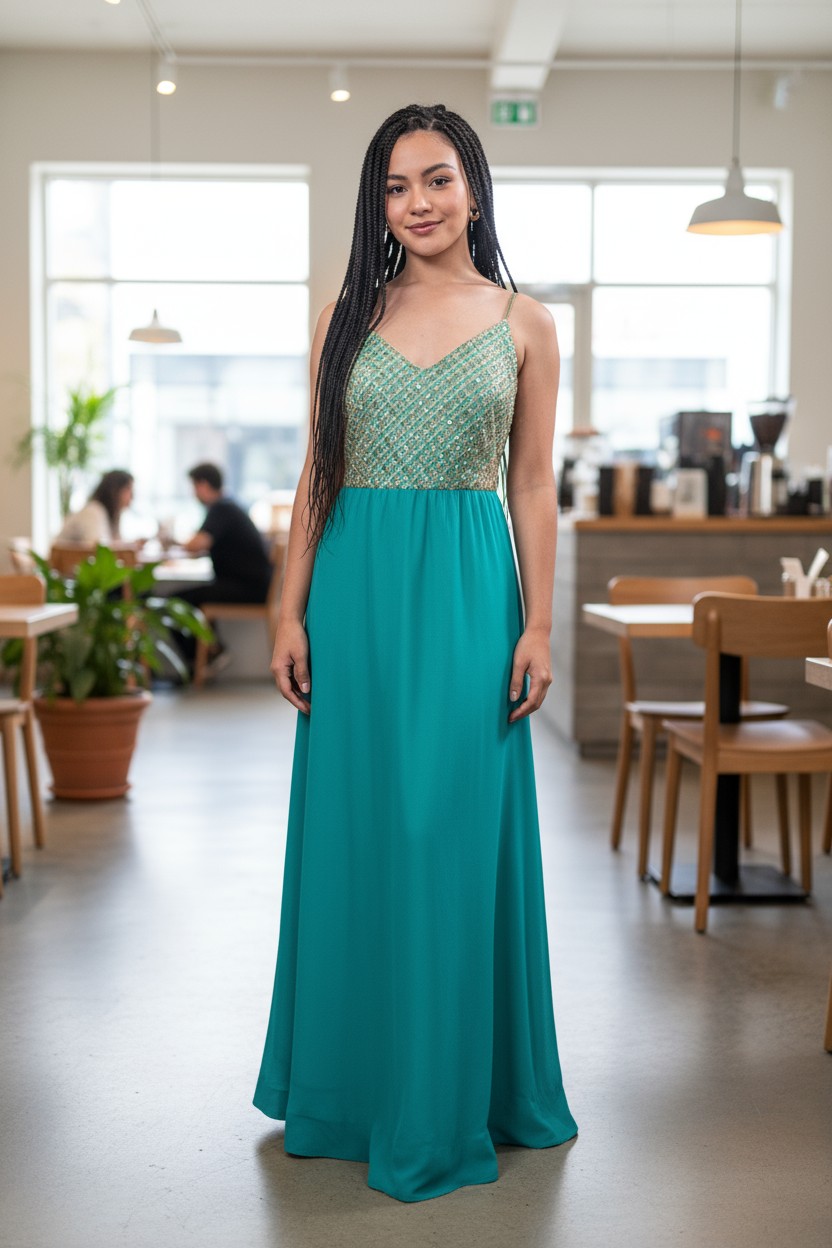 Modelo Azucena – Vestido Verde Agua con Breteles